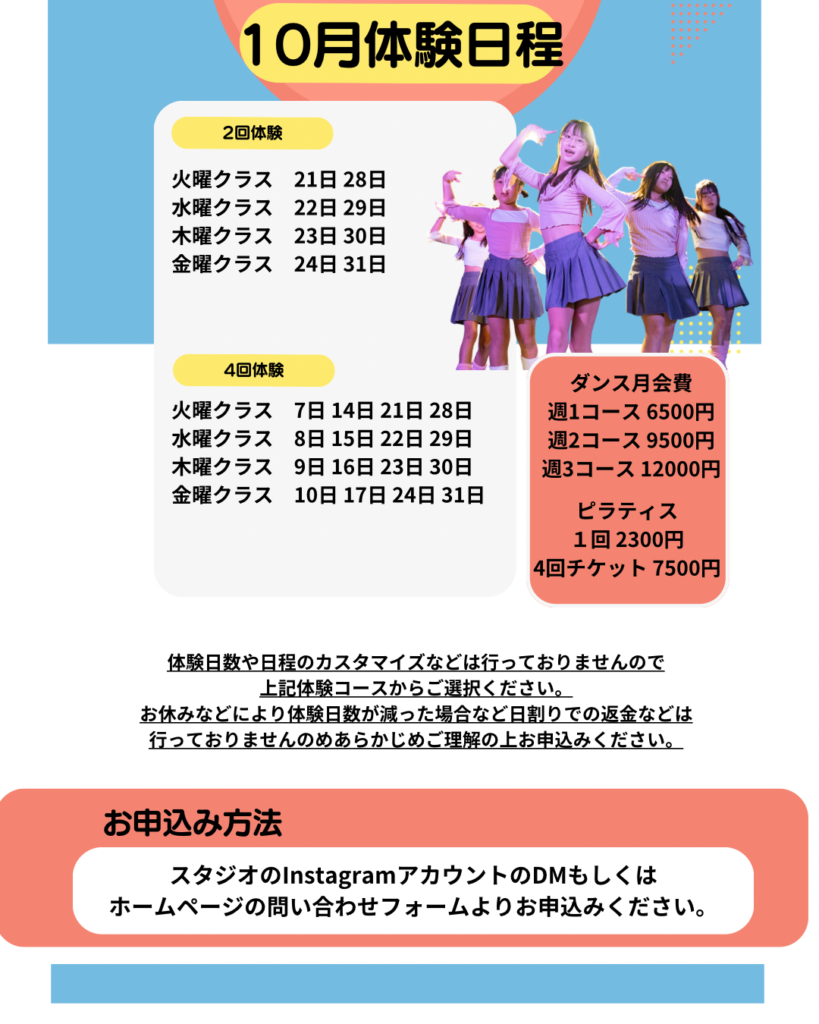体験ご希望の場合はHPまたはスタジオインスタDMよりお問い合わせください。