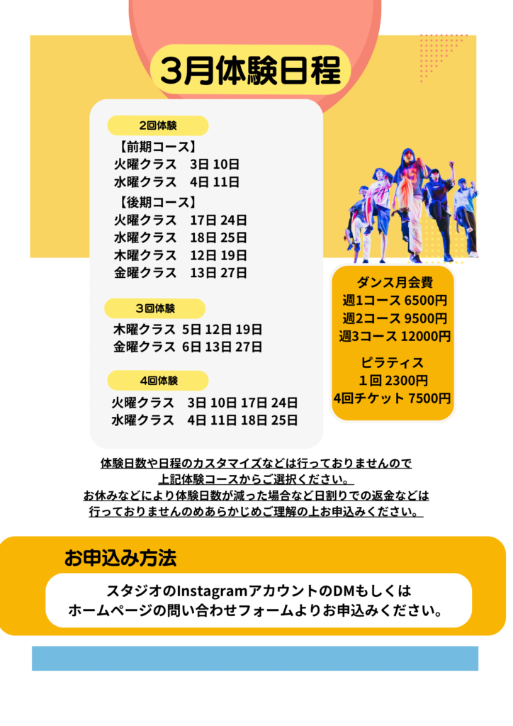 体験ご希望の場合はHPまたはスタジオインスタDMよりお問い合わせください。
